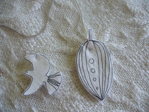 Prosta i szybka do wykonania zawieszka. Podstawę stanowią reszki materiału z Ikei, wycięte i naklejone na gruby kawałek filcu. Nosić ją możemy na łańcuszku, rzemyku bądź sznurku. Zostało mi jeszcze sporo materiału z innymi obrazkami do wycięcia m.in ptaki i zielone listki, więc pewnie powstaną kolejne zawieszki.